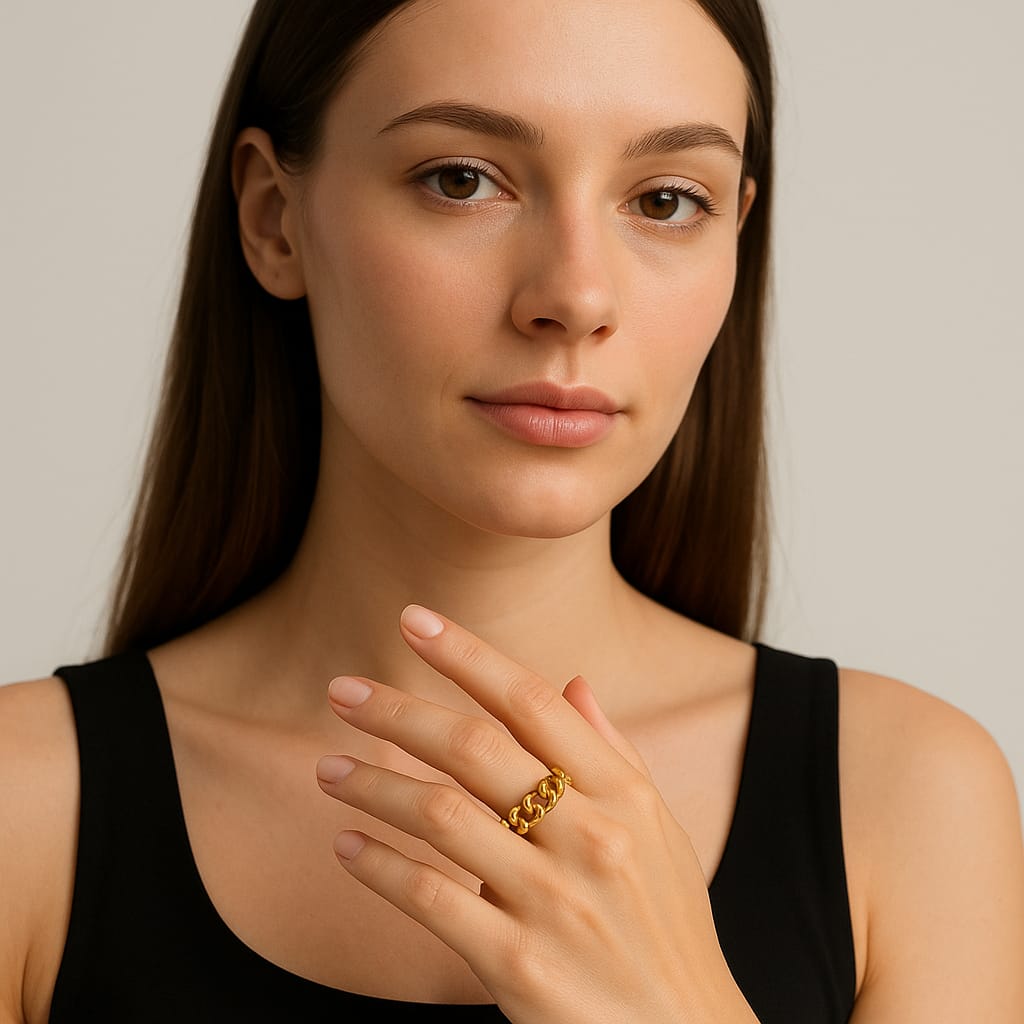 טבעת "גורמט גולד" היא טבעת זהב אמיתית 14 קראט במשקל 3.38 גרם, בהשראת עיצוב גורמט יוקרתי ומודרני. שילוב מושלם בין סגנון נצחי לנוכחות מרשימה, עם גימור מוקפד שמעניק לטבעת מראה יוקרתי ואלגנטי. טבעת מושלמת לנשים שאוהבות סטייל חזק, מתוחכם ומלא אמירה – ומתאימה כמתנה יוקרתית לאישה מיוחדת.