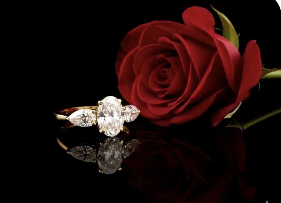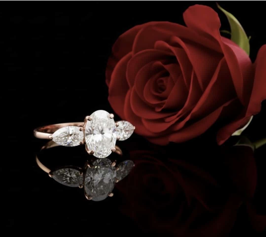 טבעת יהלומי מעבדה אובל עם טיפות – 1.36 קראט