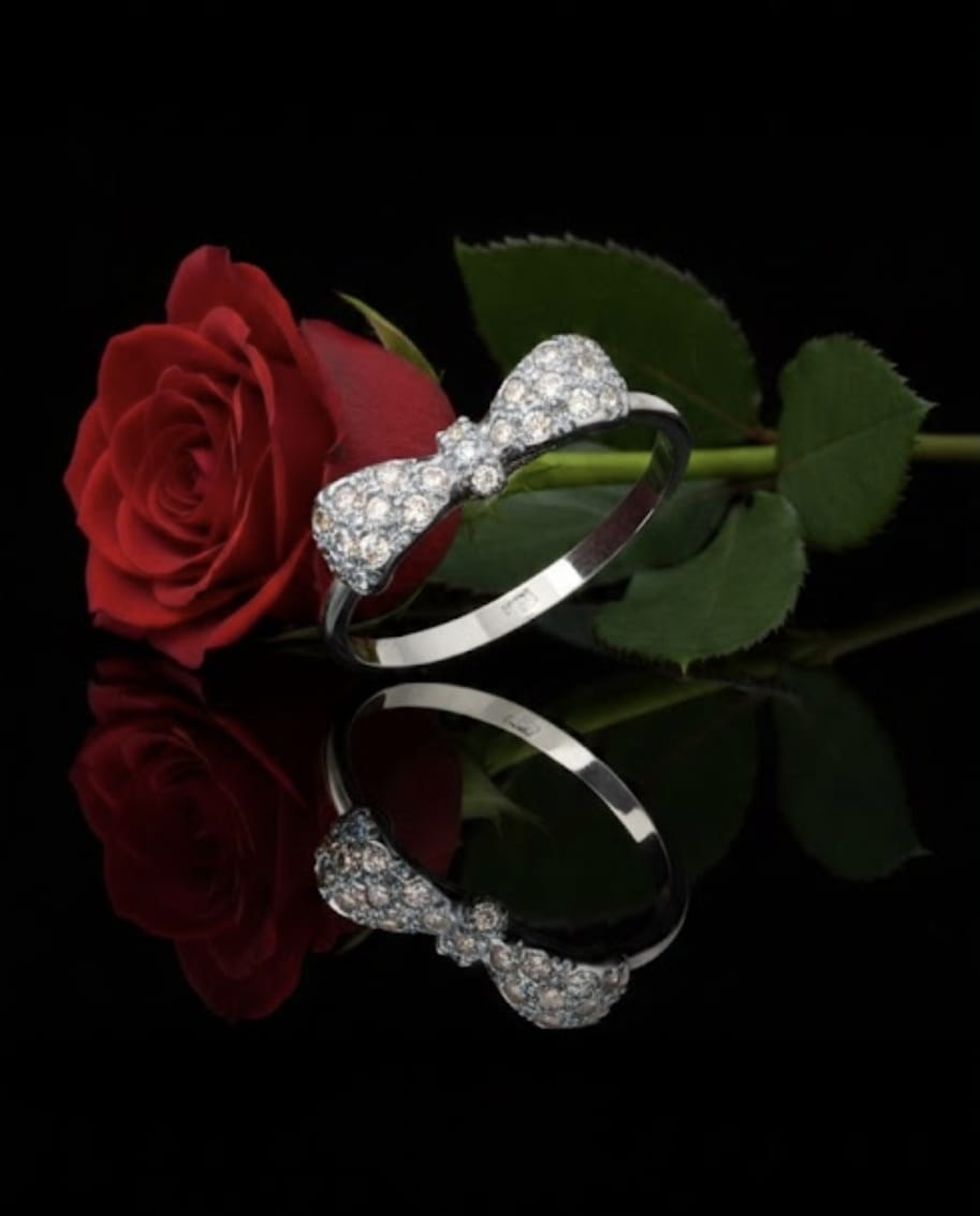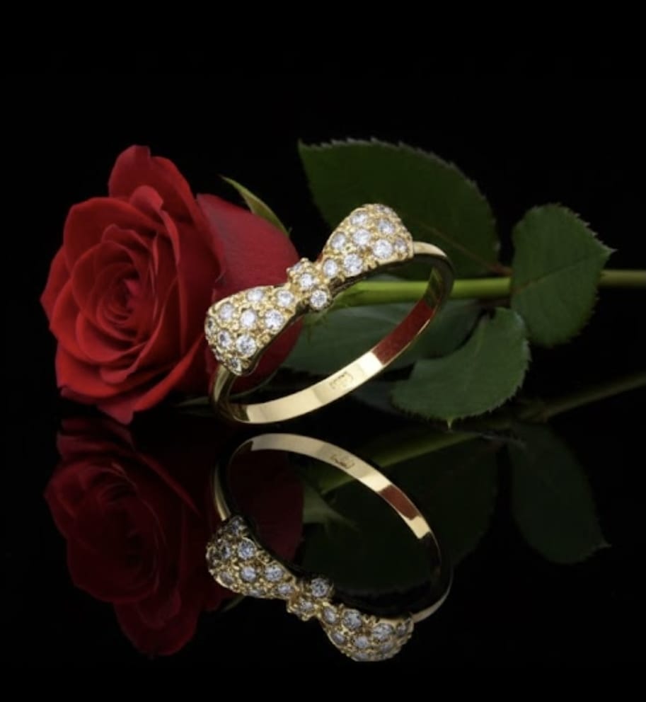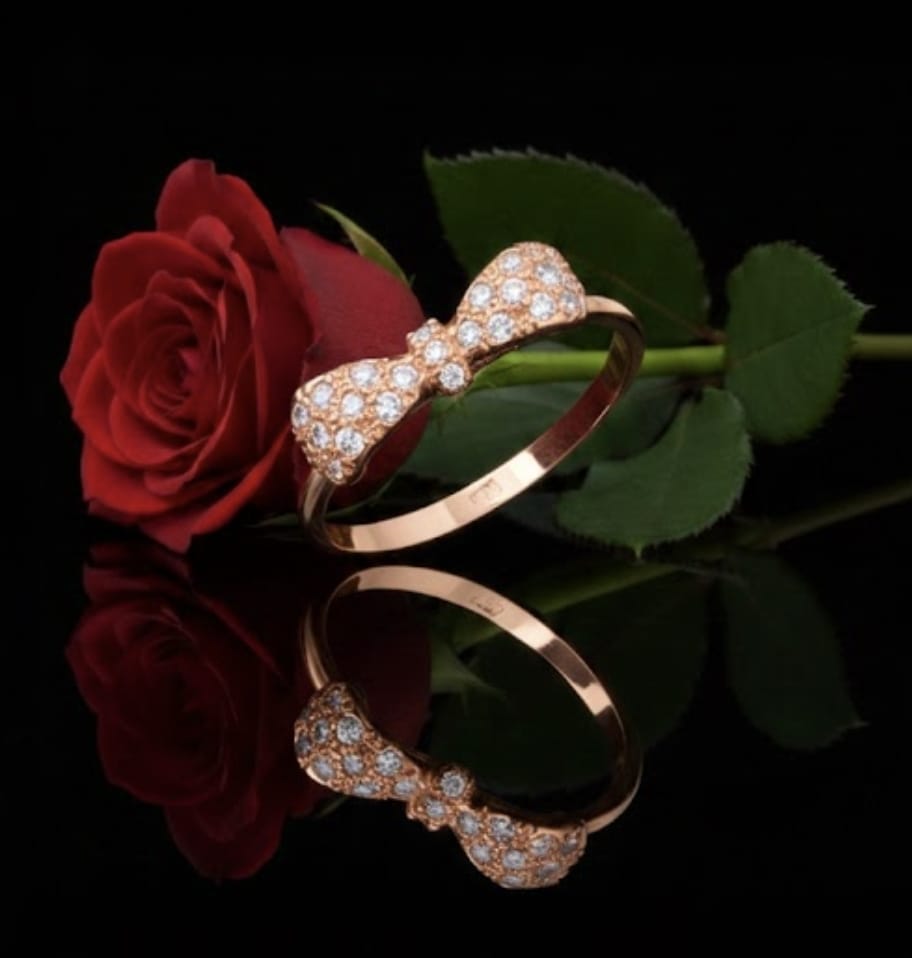 טבעת זהב פפיון משובצת זירקונים – עיצוב עדין ואלגנטי