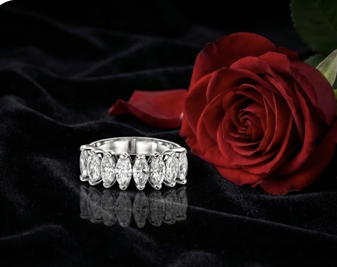 טבעת זהב משובצת 7 יהלומי מרקיזה – 14K