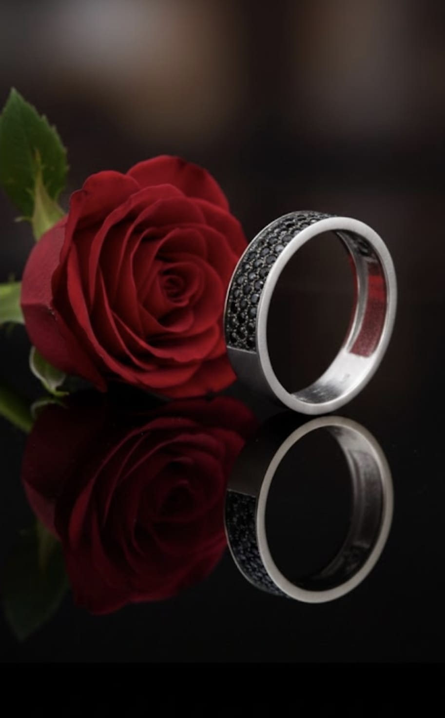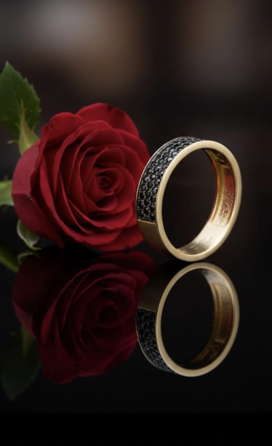 טבעת זהב משובצת אבנים שחורות – עיצוב של 3 שורות