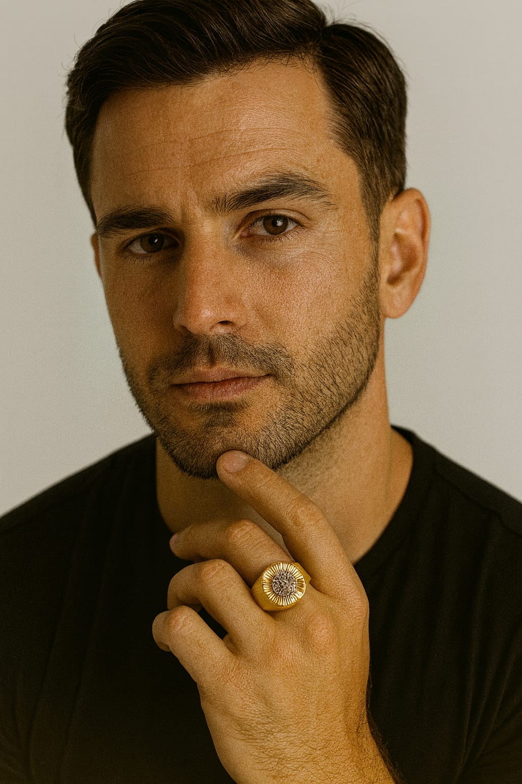 טבעת "ליבת הזהב" משלבת בין עדינות, נוכחות ואסתטיקה מושלמת — תכשיט שמאיר את היד ומדגיש את הסטייל הגברי במלואו.
