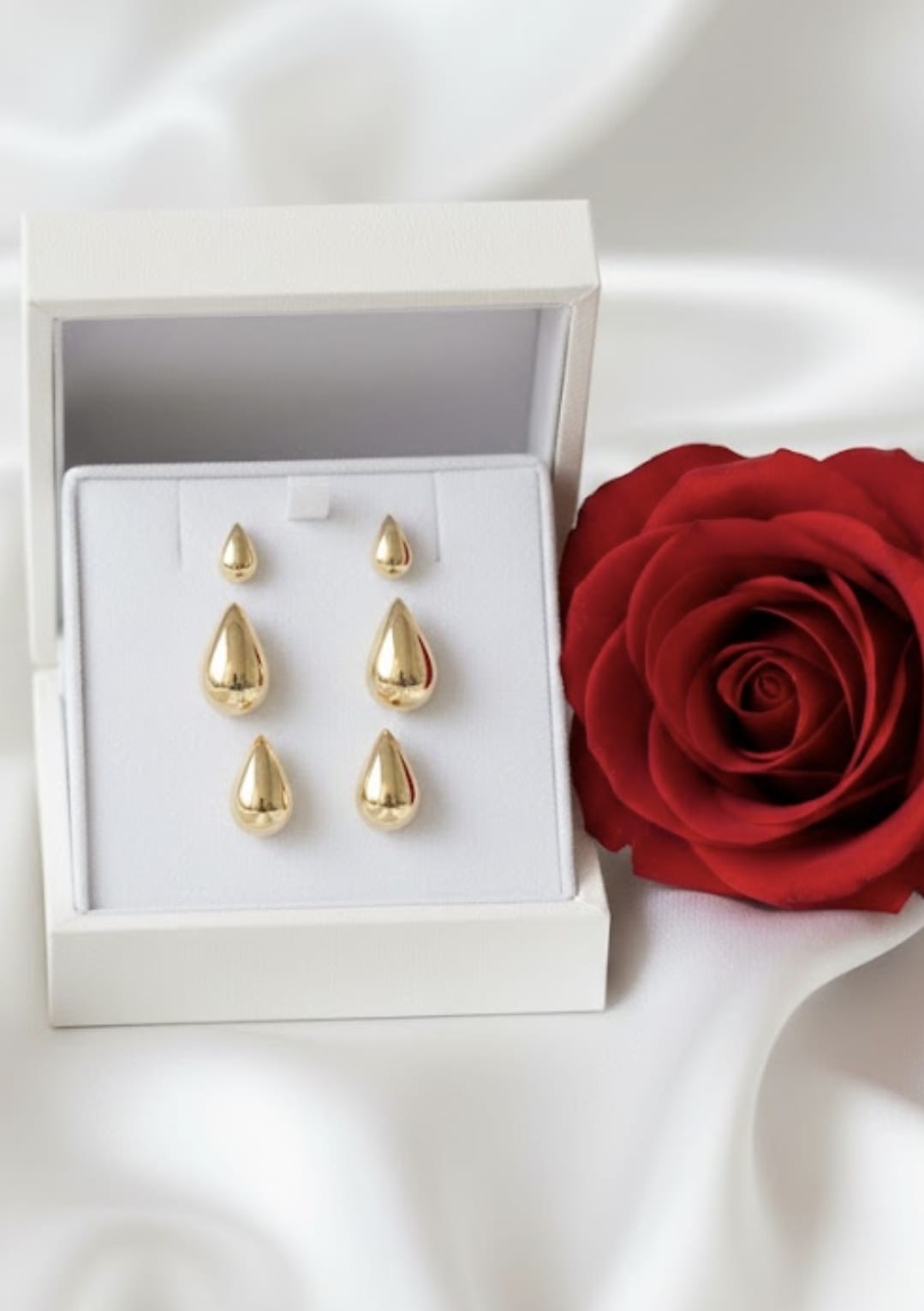 עגילי טיפה מזהב 14 קראט בעיצוב קלאסי ואלגנטי, בעלי קווים רכים ונוכחות נשית מחמיאה. האורך 3 ס״מ והרוחב 1.3 ס״מ יוצרים איזון מושלם בין מראה בולט לאלגנטיות עדינה.