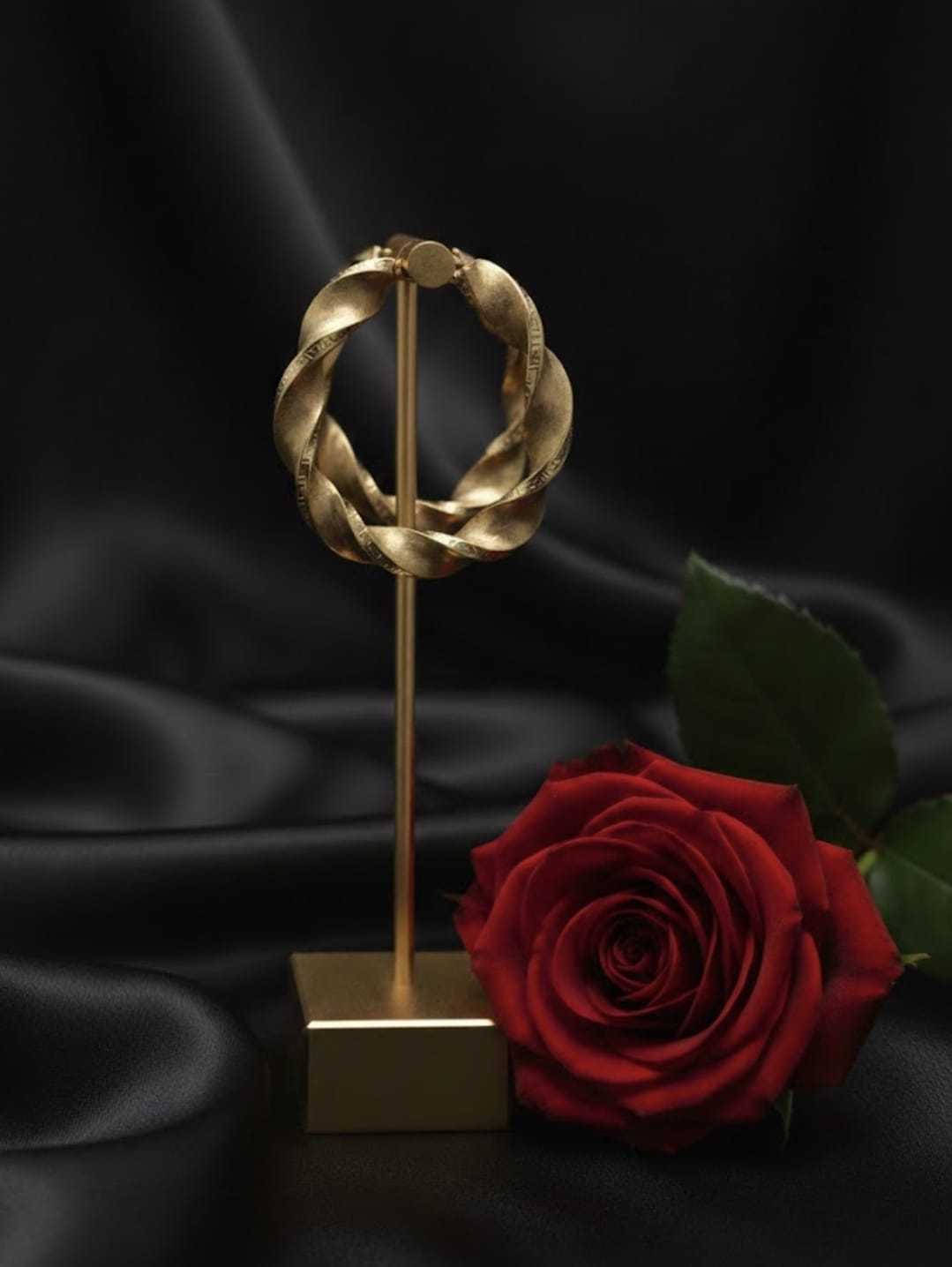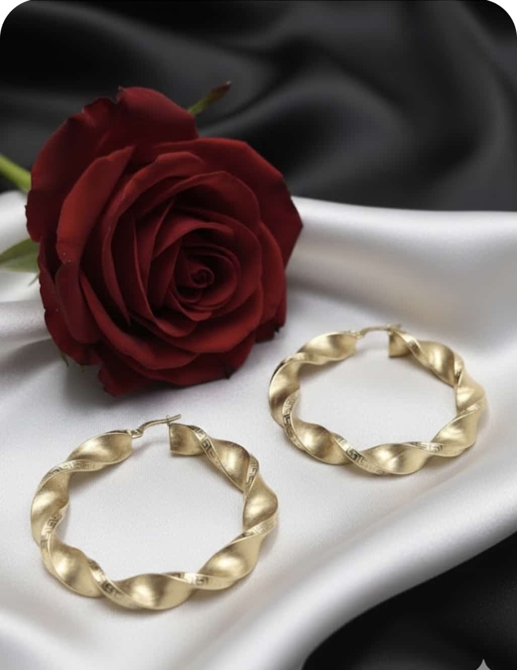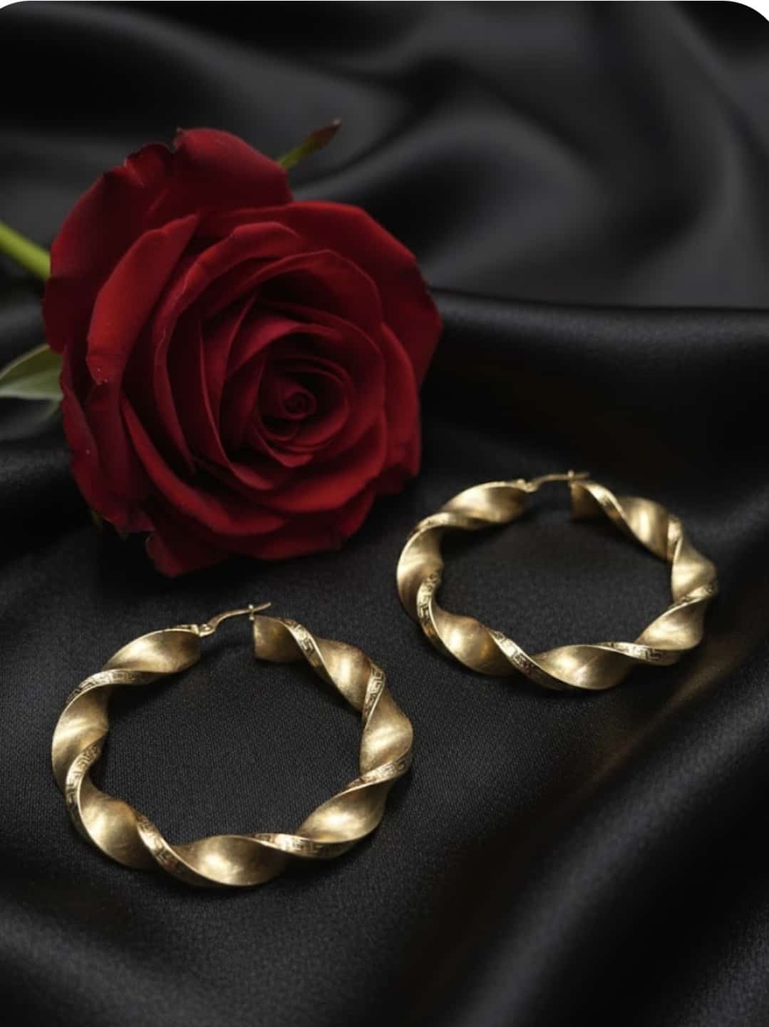 עגילי זהב מסולסלים מזהב 14 קראט בעיצוב ייחודי ומרשים, המשלב קווים מעוגלים עם תנועה טבעית ואלגנטית. הקוטר 5.5 ס״מ מעניק נוכחות בולטת ומראה יוקרתי, תוך שמירה על איזון מושלם ונוחות ענידה.