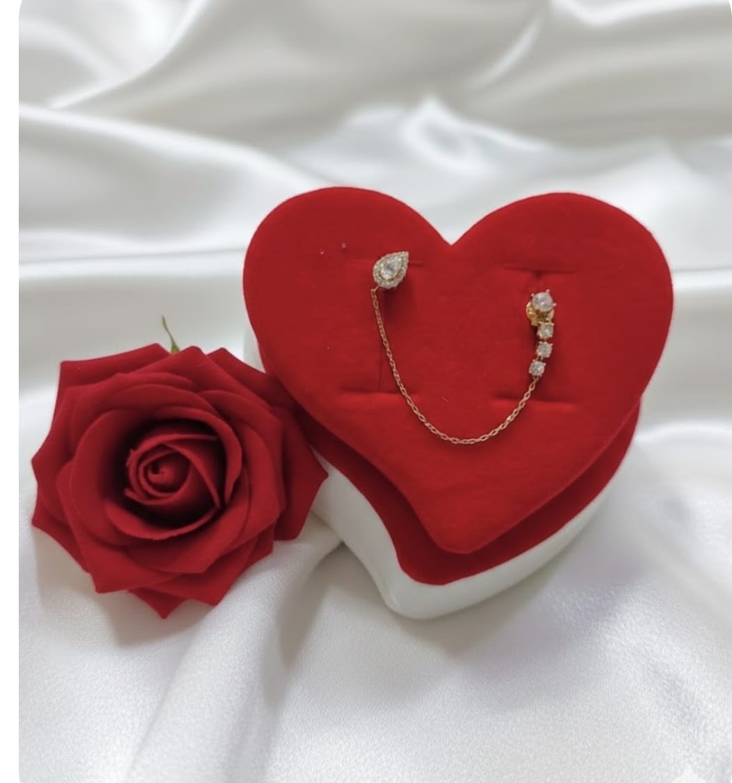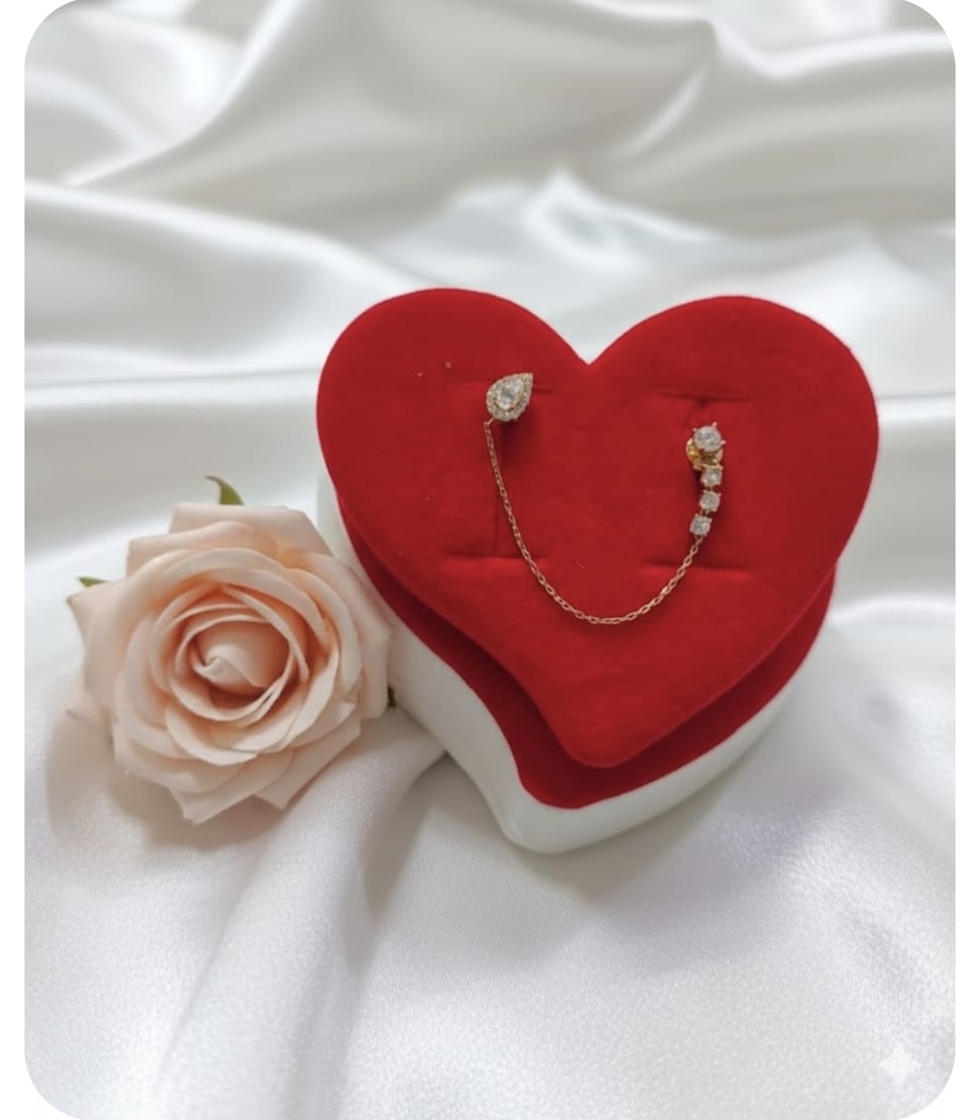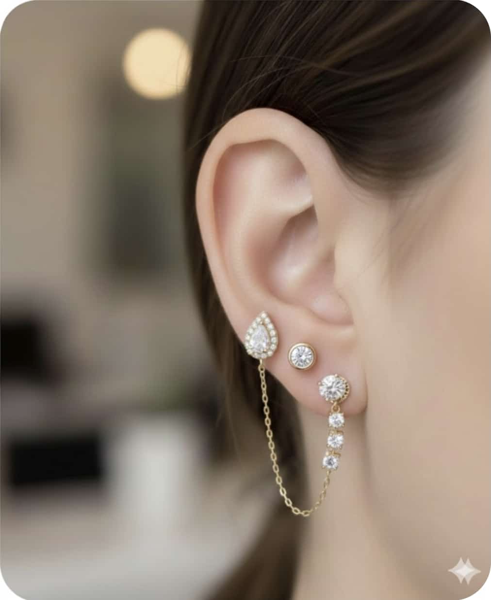 עגיל שרשרת ייחודי ומודרני בזהב 14 קראט, משובץ זרקונים מבריקים ומעוצב לענידה בשני חורים באותה האוזן, ליצירת מראה מחובר, טרנדי ואלגנטי.