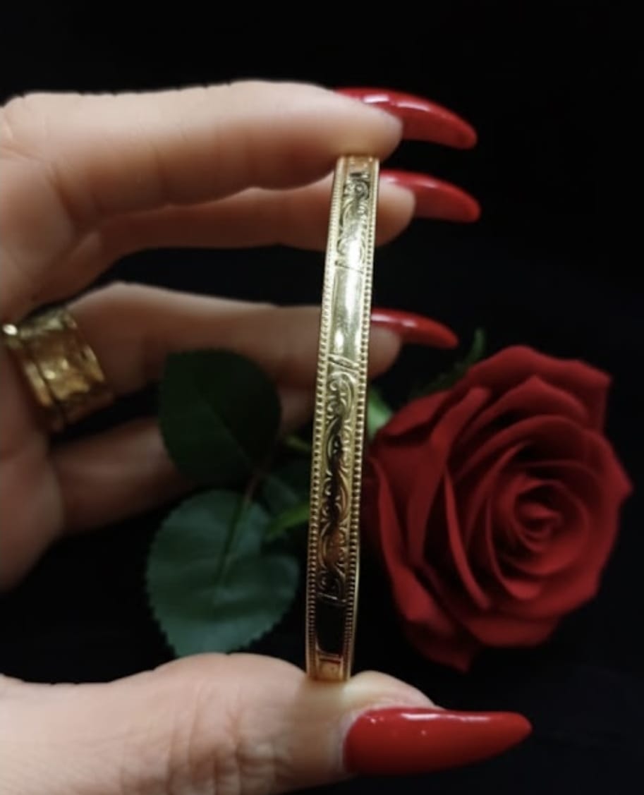 צמיד קשיח מרוקאי ייחודי מזהב 14 קראט, מעוטר בעיטורים מסורתיים בהשראה מרוקאית, המעניקים לצמיד מראה עשיר, אותנטי ויוקרתי. שילוב מושלם בין אומנות מסורתית לעיצוב על־זמני.