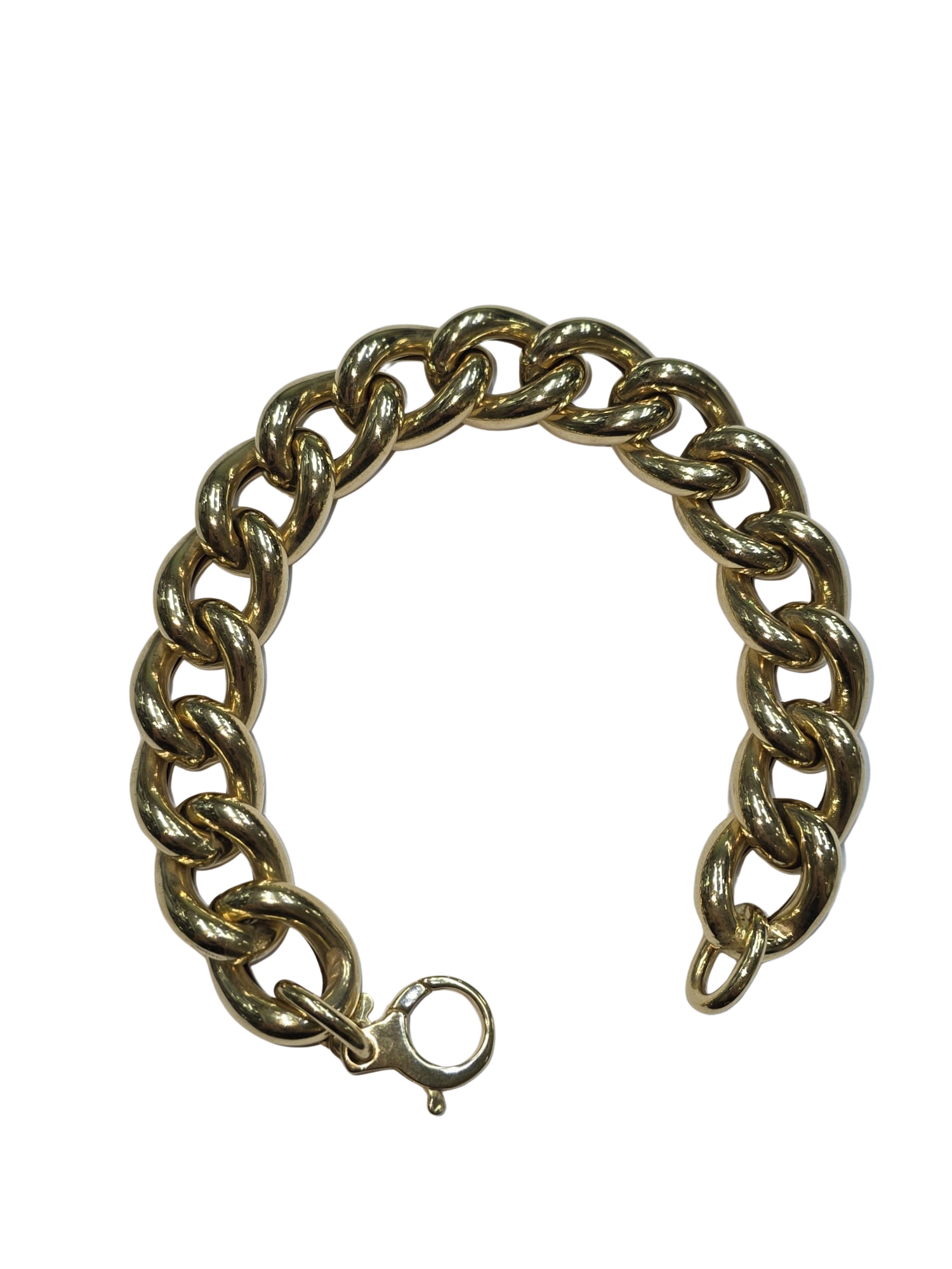 צמיד חוליות מזהב צהוב 14 קראט בעיצוב קלאסי ובעל נוכחות מרשימה, עשוי זהב איכותי במשקל 22.27 גרם המעניק מראה יוקרתי וחזק על היד. רוחב חוליה של 1.5 ס״מ יוצר מראה דומיננטי ומאוזן, ואורך של 22.5 ס״מ מספק התאמה נוחה ויציבה.